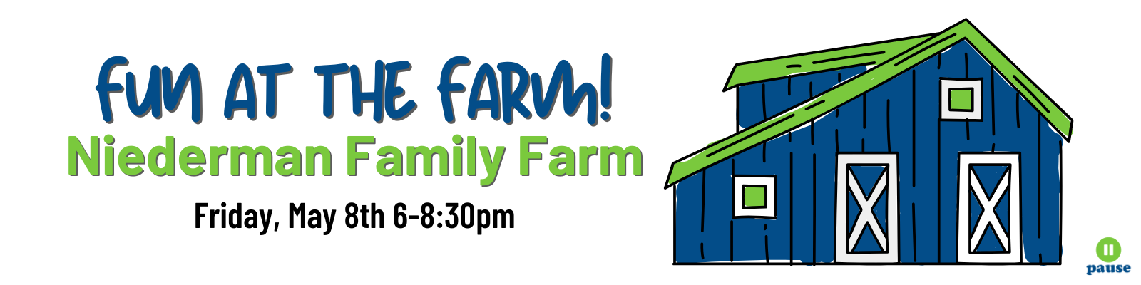 Join us for the Fun at the Farm event on FRIDAY, May 8th from 6:00-8:30pm at Niederman Farm!