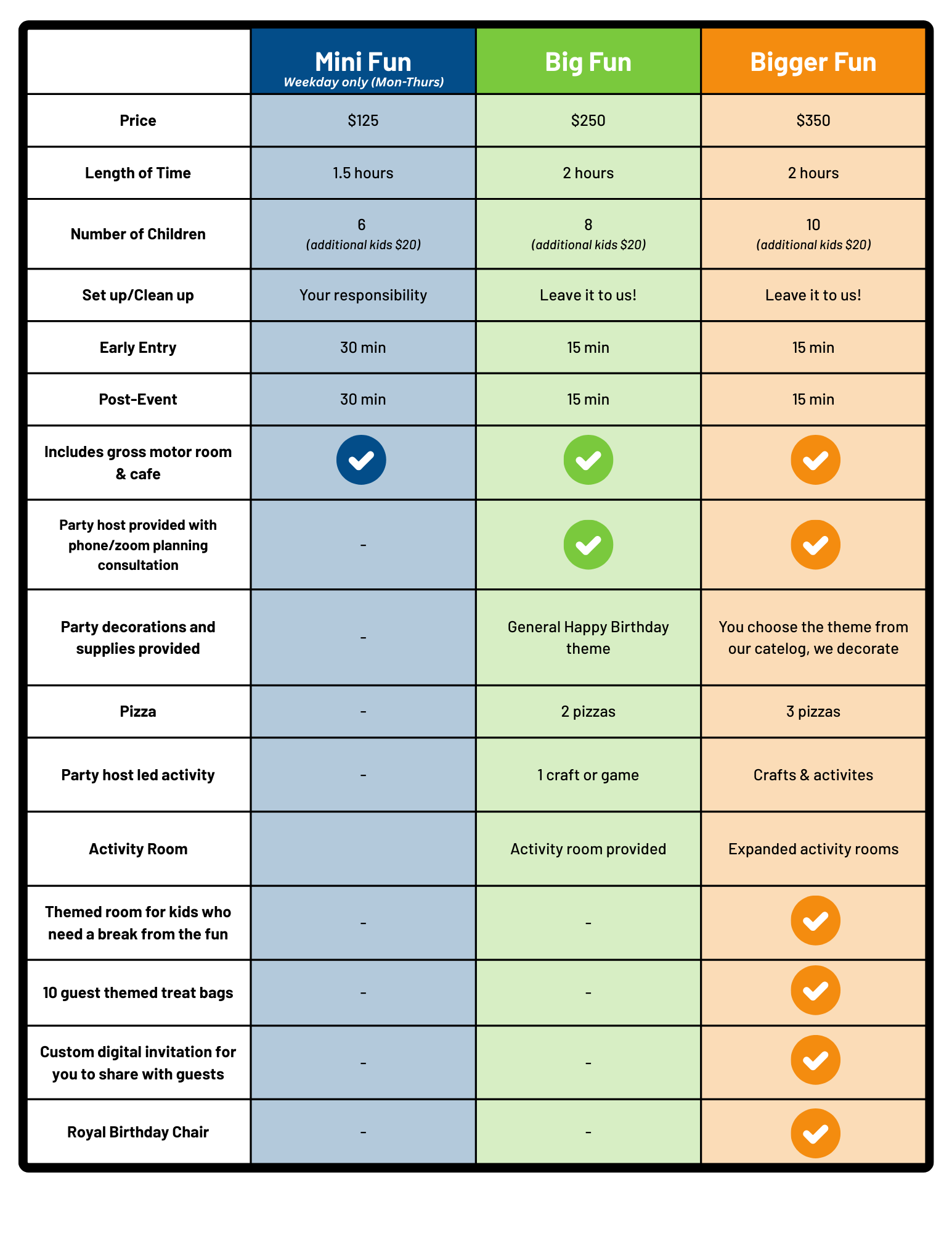 Consultation with your event host to talk through your package details and customizable packages/themes to make your child feel special on their day!